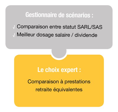 - Gestionnaire de scénarios : choix entre SARL/SAS et dosage optimal entre rémunération et distribution.